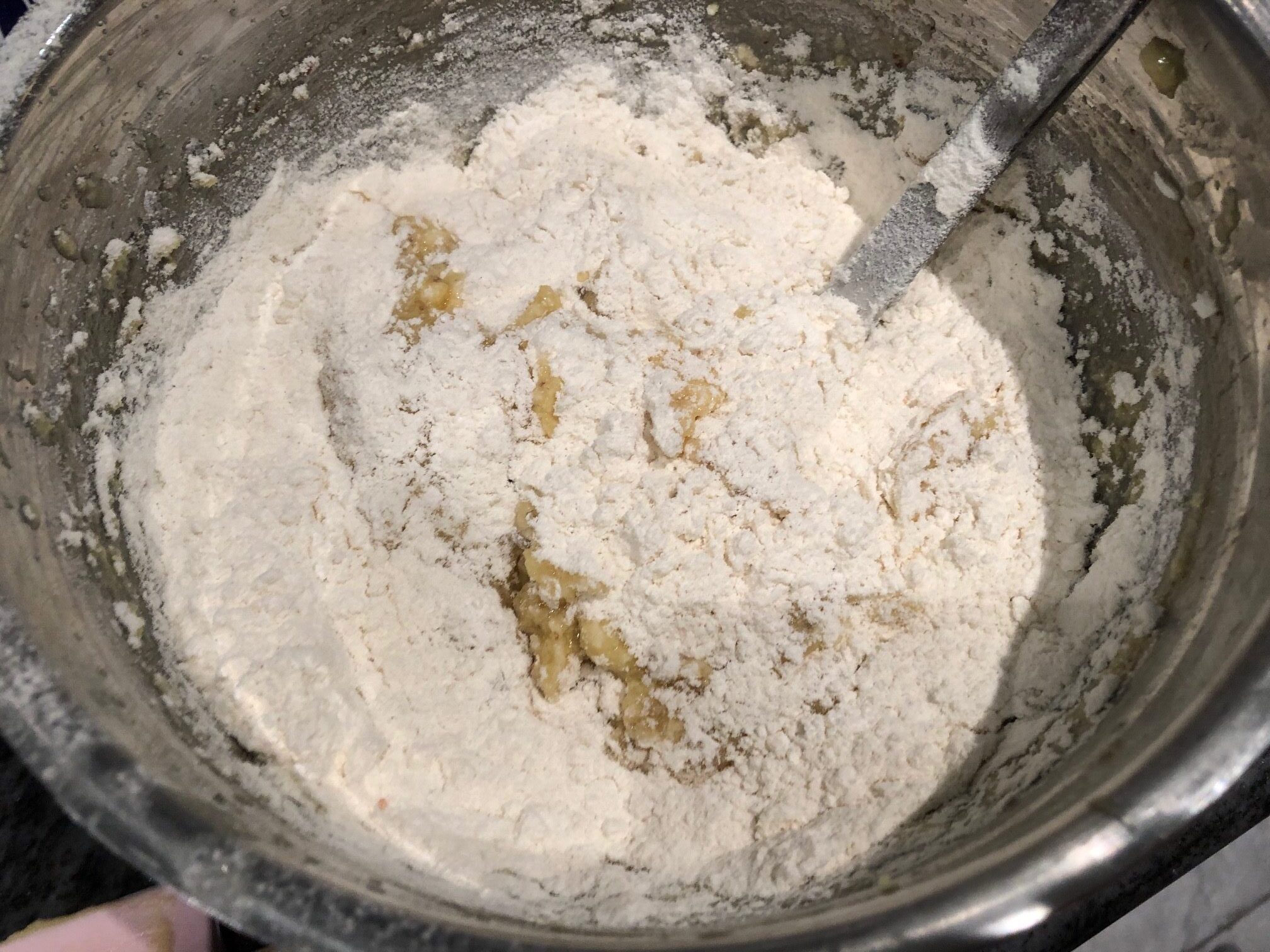 Add eggs and continue mixing until well combined.