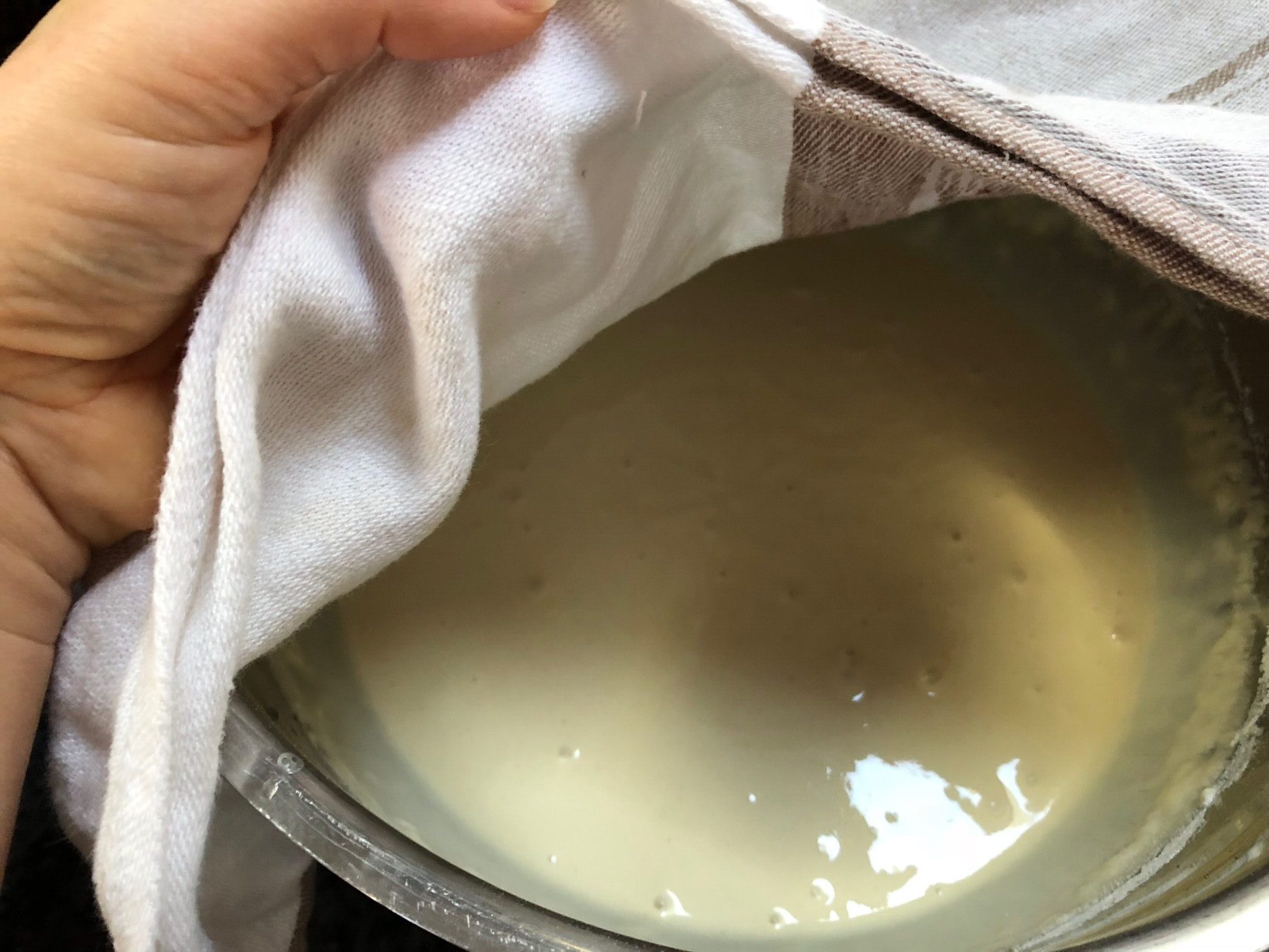 Once thoroughly mixed, let it stand for 25-30 minutes covered with a dish towel for the batter to expand.